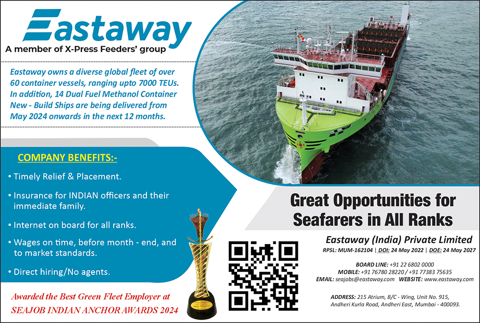 Eastaway Ship Management Pte. Ltd. is a prominent global manager and owner of container vessels, known for its modern fleet and a rigorous commitment to international maritime safety and compliance standards. Operating under the X-Press Feeders Group, Eastaway manages more than 57 container ships, with new high-efficiency and dual-fuel vessels steadily joining the lineup. Headquartered in Singapore, Eastaway has operational offices worldwide, with a significant presence in Mumbai, India, which serves as a major hub for crew management and recruitment.