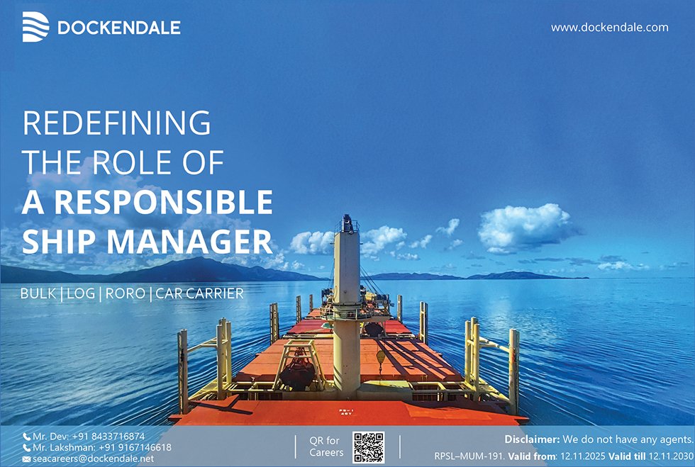Dockendale Ship Management is a Dubai-headquartered ship management company founded in 1973. Part of the MUR Group, it offers full technical and crew management services for a fleet of approximately 50–60 vessels, including dry bulk carriers, container ships, oil and chemical tankers, and car carriers. With a global presence in Dubai, Mumbai, Kochi, Hong Kong and the Philippines, the company employs over 2,000 seafarers and 100+ onshore staff, focusing on safety, operational excellence and sustainable practices.The company emphasizes trust, transparency, safety and environmental responsibility. It also invests in training and technology, including a training academy in Mumbai to support crew development and future maritime skills.