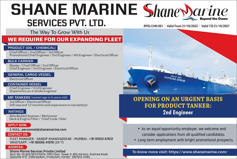 Shane Marine Services Private Limited is a professional ship management and crewing services company based in Kochi, India. It is recognized for providing technical ship management, crewing management, safety and quality oversight, and purchase management services to vessel owners globally. The company strives for zero accidents and zero spills at sea by maintaining high standards of operations and environmental protection. Its expert team includes technical, crewing, purchase, and accounts personnel capable of managing multiple commercial vessel types. Shane Marine also assists ship owners in inspections and vessel acquisition procedures. The organization follows industry best practices and regulatory compliance to ensure safe and efficient marine operations. Its vision focuses on building global goodwill as a trusted ship management partner.